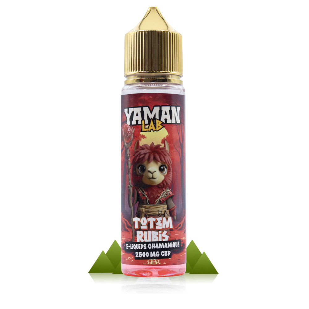 Succombez au CBD Totem Rubis 50ml par Yaman Lab une alliance unique de chanvre cerise et framboise pour une vape relaxante et fruitée fabriquée en France sans THC.